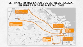 El viaje más extenso que se puede realizar en el sistema de subterráneos de la Ciudad de Buenos Aires, sin repetir ninguna estación, abarcaría un total de 54 estaciones, lo que representa alrededor del 60% del total de las estaciones disponibles en la red. Sin embargo, vale una aclaración: se trata del trayecto más largo que se puede realizar pero solo a modo exploratorio, no como opción efectiva de transporque porque en el recorrido se vuelve a la misma zona donde se comenzó.