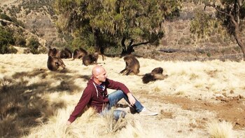 Nos apostamos enfrente del acantilado y apenas amanece, y el sol empieza a pegar sobre la pendiente empinada, vemos como los geladas empiezan a subir y trepar, como si una alarma les indicara que es momento de comenzar las actividades del día. Grandes, chicos, machos, hembras, adultos, crías, cada uno traza su propio camino hacia lo alto hasta llegar al terreno horizontal en la parte superior.