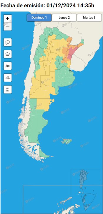 En tanto, de acuerdo a lo indicado por el Servicio Meteorológico Nacional, el sur de Santa Fe, gran parte de la provincia de Entre Ríos y Corrientes, y el este de Chaco se encuentran con alerta naranja por tormentas. Es decir, que “se esperan fenómenos meteorológicos peligrosos para la sociedad, la vida, los bienes y el medio ambiente”, indicó el organismo.
