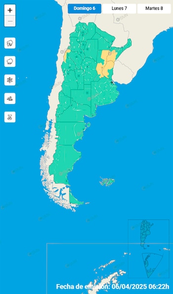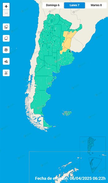 Por otro lado, el Servicio Meteorológico Nacional emitió una alerta amarilla por fuertes tormentas para Santa Fe, Entre Ríos y Corrientes. Para lo cual, se recomienda no sacar la basura y retirar los objetos que impidan que el agua escurra, evitar las actividades al aire libre, no refugiarse cerca de los árboles y postes de electricidad, no permanecer en playas, ríos o piletas, y estar atento ante la posible caída de granizo.