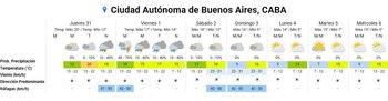 El pronóstico extendido anticipa un inicio de semana marcado por las precipitaciones en la ciudad, acompañado de temperaturas que oscilarán entre los 22 y los 29 grados