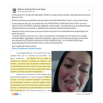 Lo más preocupante es que en varios de los posteos tergiversan lo ocurrido durante del juicio. “No pudo aceptar el fallo de la Corte, a favor de la libertad de su hermano. Nadie habló a favor de su mentira, fantasía que ella creó y trató de convencer a sus seguidores. Cuánto daño hizo el feminismo a familias enteras #BelenChaconNotecreemos. #BelenChaconbastadefalsasdenuncias”, escribió Joxe Del Valle.