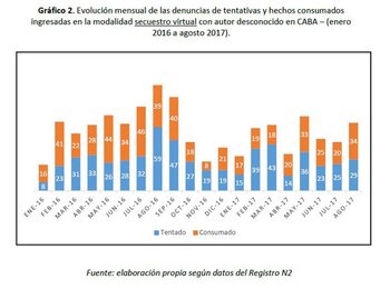 1.119 casos de secuestro virtual fueron denunciados y judicializados entre enero del año pasado y agosto de este año en la ciudad de Buenos Aires de acuerdo a un informe de la DAC, la Dirección General de Análisis Criminal de la Procuración. Creada por Alejandra Gils Carbó y dirigida por el fiscal Diego García Yomha, la DAC se encarga de elaborar informes estadísticos a partir de las causas NN en el fuero penal porteño, es decir, las causas iniciadas sin un imputado conocido, casos como el del robo de un auto, el arrebato de un celular.