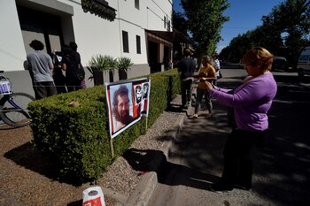 "El Brujo era un tipo divertido, siempre hacía chistes, era transparente, vivió con nosotros siete meses". Marina recuerda a Santiago y muestra el tatuaje que él le hizo en el centro de su espalda: "Un dibujo inca que él lo dejó perfecto". Marina y cuatro amigos, con dos bebés, juntaron plata y llegaron de Mendoza. Se instalaron frente a la casa velatoria y colgaron una bandera negra con la leyenda anarquista "Muerte al Estado" y una bandera mapuche. Tienen pensado quedarse para el entierro, previsto para este domingo al mediodía en un cementerio privado. "No sabemos cómo vamos a volver porque no tenemos plata, pero queríamos estar con él y con su familia", se emociona Marina.