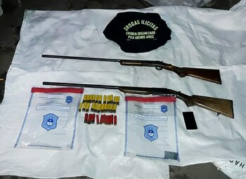 Además, los uniformados incautaron cuatro armas de fuego (dos escopetas y dos revólveres calibres 32 y 38), 256 mil pesos en efectivo, dos mil dólares, balanzas de precisión y celulares que servirán para profundizar la investigación.