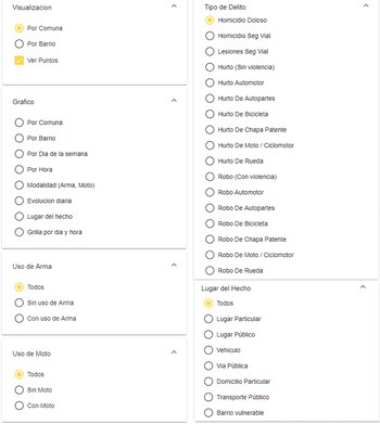 El diseño es intuitivo. Al ingresar a la web aparecerá al centro de la pantalla un mapa de la ciudad de Buenos Aires y en la parte superior izquierda un único botón que desplegará la serie de opciones que nos permitirán comenzar a seleccionar y filtrar los datos que queremos conocer.