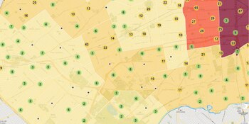 Los números dentro de círculos grandes indicarán la cantidad de hechos que en una determinada zona se produjeron durante el período indicado, mientras que que al hacer zoom sobre el mapa veremos aparecer puntos más pequeños, de color oscuro, exactamente donde ocurrió cada hecho.