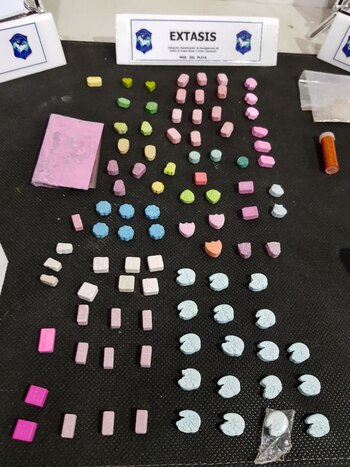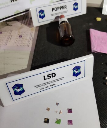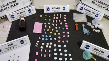 La fuerza de seguridad bonaerense incautó un total de 94 pastillas de éxtasis, 75 cigarrillos de marihuana, un frasco de popper, 10 microdosis de LSD, metanfetamina y varios envoltorios de cocaína y cristal ice.