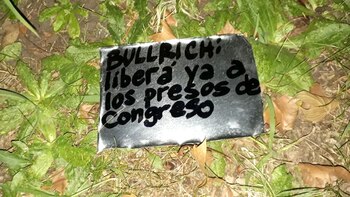 "Bonadio, vamos por vos y tu familia", era una de las inscripciones. La otra hacía referencia a los incidentes registrados el 18 de diciembre durante la discusión de la reforma previsional: "Bullrich, liberá ya a los presos del Congreso".