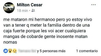 "Me mataron a mi hermano pero yo estoy vivo. Van a tener que meter a la familia dentro de una caja fuerte porque les voy a hacer cualquiera. Manga de cobardes, gente inocente matan nomás", escribió en su muro.