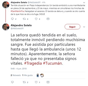 Un taxista atropelló y mató a una mujer que se encontraba manifestando en las cercanías a la casa de Gobierno de Tucumán, en la calle 24 de Septiembre y 25 de Mayo.