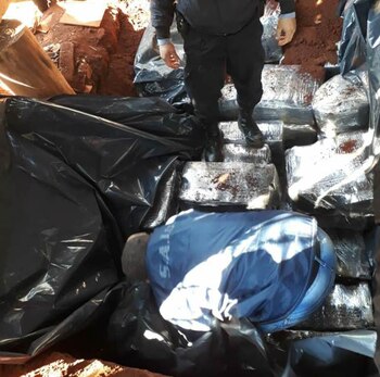 Bajo la supervisión del juez de Instrucción 7 de Posadas, Carlos Jorge Giménez, los investigadores dieron con la droga luego de notar que en una parte del terreno había tierra removida. Cuando avanzaron con la pesquisa, vieron una especie de depósito con la droga.