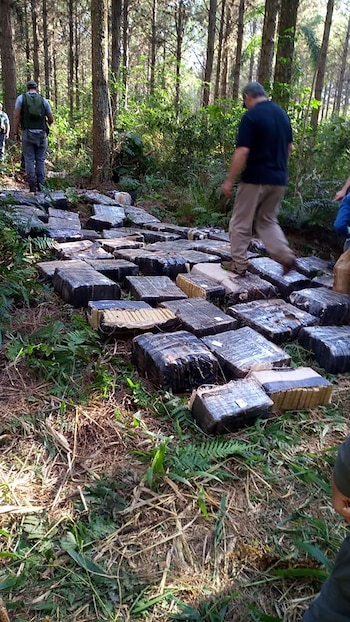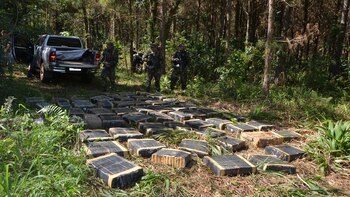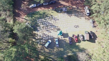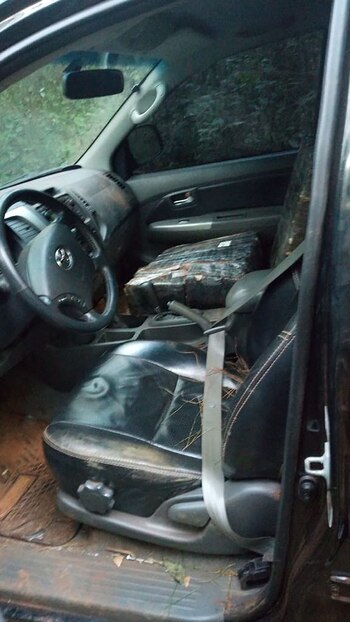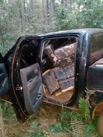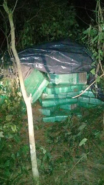 Así hallaron dos camionetas que estaban ubicadas a unos 500 metros entre sí, que en su interior tenían droga. También había montículos de paquetes de marihuana tapados con lonas y hojas secas.