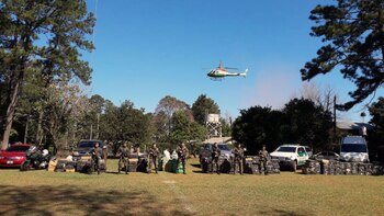 A partir de una orden judicial, personal de la Unidad de Investigación y Procedimientos Judiciales "Eldorado", con apoyo de otras unidades de la fuerza ingresó en la zona boscosa con el apoyo de un drone y un helicóptero para inspeccionar en detalle el lugar.