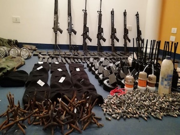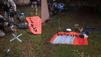 En el lugar secuestraron siete fusiles, 15 pistolas, municiones de guerra, explosivos, clavos miguelito, equipos de comunicación y pasamontañas, uniformes militares y hasta los planos elaborados a mano alzada y en un cuaderno de la Agrupación Especializada donde está detenido Marcelo Fernando Pinheiro Veiga, alias "Piloto".