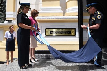El acto ocurrió en las escalinatas del edificio del barrio de Monserrat, considerado Monumento Nacional Histórico el mes pasado. El orfebre Juan Carlos Pallarols entregó una rosa de plata en homenaje a los policías caídos de la fuerza y se develó una placa conmemorativa. También hubo un desfile de efectivos montados a caballo y de uniformados de divisiones tácticas.