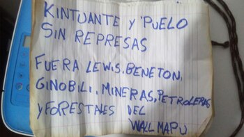 "Kintuante y Puelo sin represas. Fuera Lewis, Beneton, Ginobili, mineras, petroleras y forestales del Wall Mapu".
