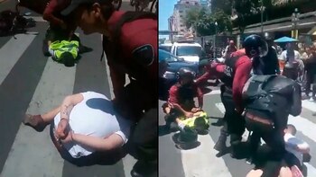 El cruce de la avenida Córdoba y San Martín fue el escenario en el que varias personas descargaron su furia contra dos motochorros que estaban siendo detenidos por la Policía de la Ciudad luego de haber robado a pocos metros del lugar.