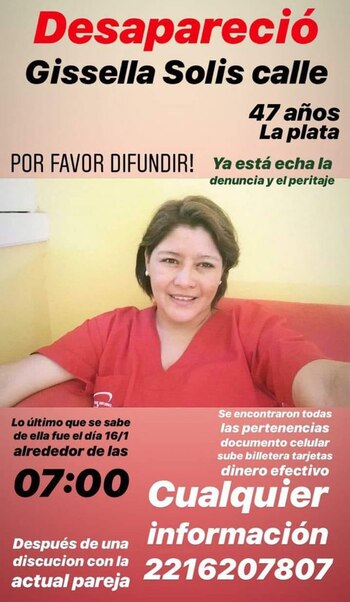 Casimiro Abel Campos, la ex pareja Gisella Solís Calle -buscada hace 6 días en La Plata-, tenía una doble vida. El dato fue confirmado por la fiscal que investiga la desaparición, Ana Medina, y ratificado por la familia de la odontóloga.