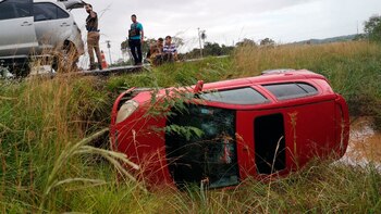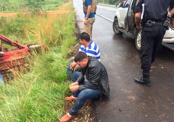 El camión iba seguido de un vehículo marca Toyota Vitz color rojo, que iba de "puntero". Al ver la presencia policial, intentó huir. Tras unos kilómetros de persecución, el automóvil sufrió un vuelco cayendo en una cuneta, ya en cercanías de la localidad de Maciel.