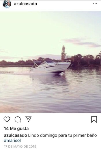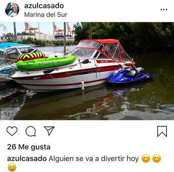 Azul, la hija de Néstor Casado, fue la que más expuso al funcionario mostrando las nuevas adquisiciones de la familia. "Bienvenida a la familia. Feliz", escribió en su cuenta de Instagram la joven al mostrar a una Dodge RAM negra. Mientras que en otro de los posteos fotografió a una lancha antes de ser metida al río: "Al agua pato, bienvenida hermosa". Y así, relataba la infinidad de "chiches" de los Casado.