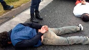 Los supuestos asaltantes, movilizados en una camioneta Fiat Ducato, ploteada con la sigla AYSA (Agua y Saneamientos Argentinos), fueron interceptados en la intersección de Campo de Mayo y avenida Márquez, justo en la esquina, a 20 cuadras del supermercado Día situado en Loma Hermosa.