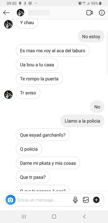Pero eso no es todo, ya que también le advirtió que si no volvía con él iba a viralizar contenidos privados: "Me amenazó que iba a publicar videos míos íntimos, algunos eran consensuados, pero yo después le revisé el teléfono y vi muchas fotos y videos míos que yo no sabía que me había filmado", afirma.