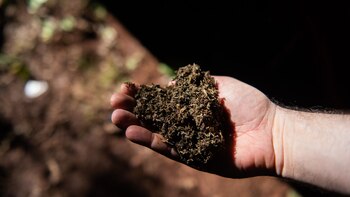 Y poco después, no muy lejos de lo que parece un casco de estancia, de los tractores, está la espesura, palmeras altas y árboles de flores color nácar llenos de huevos de termitas, parte de la estancia que por ley debe quedar como reserva forestal. Hay claros entre los árboles, se pueden ver desde la ventana del helicóptero, zonas taladas e incendiadas para pelar la tierra roja y plantar, al menos tres hectáreas con filas torcidas de plantas verdes: a 50 metros del suelo y con cuatro aspas que agitan el viento el olor a zorrino agrio ya te toma la nariz.