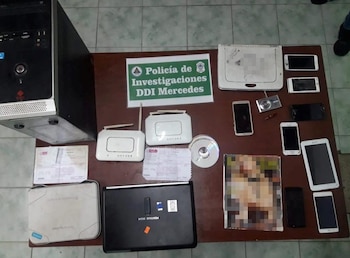 En el inmueble, ubicado en Dardo Rocha al 3100, los efectivos secuestraron tres notebook, una CPU, dos modems, una tablet, una cámara digital, siete teléfonos celulares, pendrives, DVDs, documentación y revistas con imágenes pornográficas, entre otros elementos.