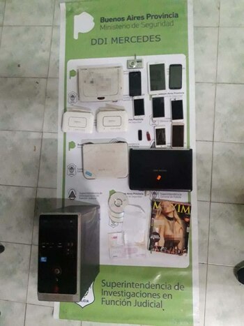 En la propiedad, emplazada sobre la calle Pereyra al 2000, secuestraron dos CPU, seis pendrives, seis tarjetas de memoria, una cámara digital, 17 celulares, una Tablet, dos módems de internet, 40 revistas pornográficas, 15 DVDs con películas pornográficas y 15 CDs con material pornográfico.