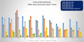 Los informes mensuales de la UFESE divulgados en el sitio de la Procuración General, muestran que mientras en 2015 se registró un total 294 secuestros, a razón de casi uno por día, en 2016 hubo 227 (19 mensuales);185 en 2017 (15 al mes) y 111 en 2018 (9 por mes).