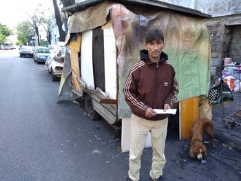 Infobae preguntó a Alberto si le habían ofrecido custodia policial, dado que no se veía a ningún agente en el lugar. “No pedí ni me ofrecieron pero la verdad es que lo necesitamos”, contesta. En ningún momento Alberto se mostró abatido. “Desde que me desperté por el incendio no hago otra cosa que tratar de recuperar algo. ¿Ven aquel chapón?”, dice mientras señala un cartel de unos dos metros por tres): “Lo voy a poner de techo”.