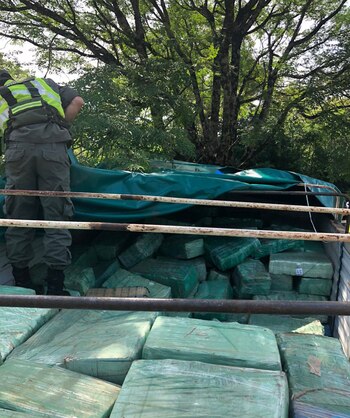 En la requisa al camión, los efectivos de la fuerza, en colaboración con integrantes de la Unidad de Operaciones Especiales en Monte "Bernardo de Irigoyen”, se toparon con una abundante cantidad de estupefacientes: 12.868 paquetes de marihuana compactados en 492 bultos.