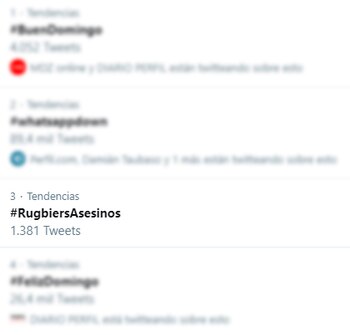 Hacia la noche del sábado, la palabra “Asesinos” a secas se ubicaba como trending topic de la red social de microblogging y superaba las 30 mil menciones. Otros TT alusivos al violento ataque en la localidad balnearia se destacaron y se reproducían en la timeline, como los comentarios “Rugby” o #Rugbiers.
