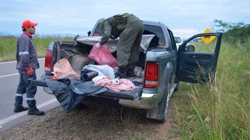 Sobre el pavimento, los gendarmes comenzaron a notar algo raro: bultos azules, envueltos en cinta. Era la cocaína que llevaban, los oficiales vieron cómo la lanzaban desde la ventanilla. Finalmente, rebasan a la pickup: sus ocupantes ni siquiera frenaron la marcha, la dejaron encendida y salieron corriendo mientras la camioneta rodaba. El rastro de paquetes era de al menos tres kilómetros.
