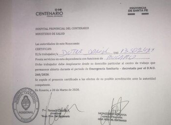 “El trabajador Dutra Daniel presta servicios en esta dependencia con funciones de mucamo”, se lee en el papel. Dutra sostenía que era falso aquel certificado. Tenía esa certeza porque en febrero, médicos de ese Hospital lo habían denunciado porque su empresa de catering les entregaba comida en mal estado. Su abogado, Carlos Varela, habló con este medio y relató: “Ese papel nunca lo usó mi cliente".