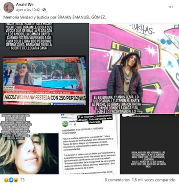 “Hoy como tantos otros días dejaron una familia destrozada, amigos destrozados... padres con la confianza rota de que sus hijos vuelvan a casa; lastimados, golpeados, habiendo sido robados pero que vuelvam y que vuelvan vivos. esta confianza se rompe cada días con cada noticia”, publicó una de las prímas de la víctima quien reclamó justicia a través de las redes sociales.