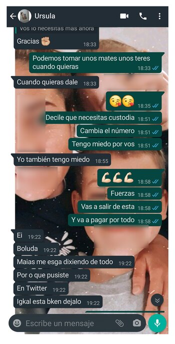 “Ya lo denuncié. Estoy en la comisaría todavía”, dijo aquel día. “Deciles que necesitás custodia. Cambiá el número, tengo miedo por vos”, le respondió una de sus amigas. Úrsula respondió: “Yo también tengo miedo”.