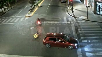 Las cámaras del Centro de Operaciones y Monitoreo de la Municipalidad de La Plata registraron el momento del impacto, donde se observa que el vehículo de menor porte manejado por un delivery pasó el semáforo en rojo e impactó contra el coche.