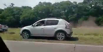 El hecho ocurrió el miércoles pasado en la ruta provincial Nº1 a la altura de la localidad de San Lucas, cuando una camioneta Amarok color azul oscuro y una Toyota Hilux de color blanco escapan en medio del tráfico y la banquina de la ruta.