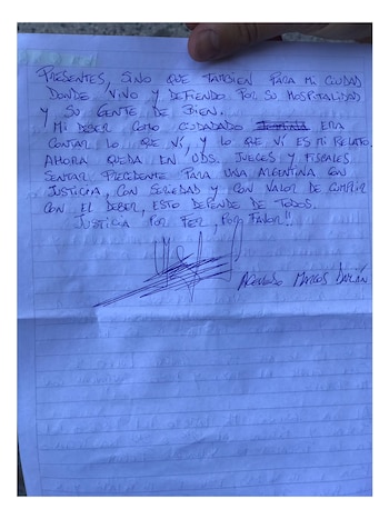 Luego, explicó que su testimonio le recuerda a los rugbiers “las acciones que los han traído a estas sillas”, en referencia a su situación como acusados de homicidio. “Hoy es tarde para pedir perdón, pero todavía están a tiempo de mostrar valentía y aliviar su alma, porque su cuerpo y mente deben estar consumidos”, escribió con cierta empatía.