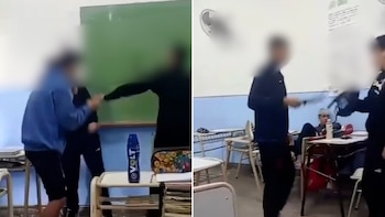 En uno de los videos difundidos en redes, de apenas 16 segundos, se observa cómo un adolescente amenaza a otro con un arma blanca en medio de una discusión por una gorra azul. Durante el forcejeo, el agresor rodea al otro con el brazo y coloca el cuchillo en su cuello. Finalmente, logra quitarle la gorra. Mientras tanto, los compañeros presencian la escena desde la puerta del aula, pero no intervienen.