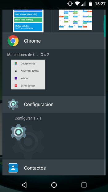 1. Hay que presionar en cualquier lugar de la home. Se verá que aparecen tres opciones. Se debe elegir la que dice Widgets, ir hasta Configuración y luego optar por el ícono de la tuerca.