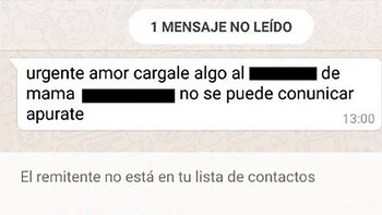 "Urgente, amor". Así arranca un mensaje que comenzó a viralizarse por WhatsApp, donde se le pide a quien lo reciba que cargue crédito a un determinado número porque "mamá no se puede comunicar". Y se concluye con un contundente: "apurate".