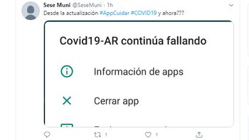“Primera vez que me paran en un control desde que empezó la pandemia y me falla la app Cuidar”, se quejó esta mañana el usuario @AguS_SL en Twitter. “¿Por qué la aplicación #Cuidar no funciona? ¿A alguien más le pasa?, se preguntó @pampi_luna. “A mí tampoco me funciona. Recién me paró un control y no pude acreditar mi desplazamiento”, le respondió Carlos Alegre. Si se bucea en distintas plataformas, abundan varias quejas similares.