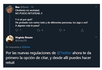Miles fueron las consultas desde el comienzo del día respecto de un cambio al momento de querer retuitear un mensaje en Twitter, ya que no se podía hacerlo de manera directa y en cambio era necesario hacerlo agregando un comentario personal, el ya conocido “tweet citado”.