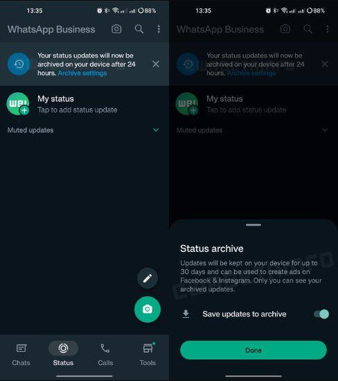 Una nueva función para la versión de negocios de WhatsApp permitirá guardar los estados por un tiempo máximo de 30 días en un espacio llamado “Archivo de Estados”.