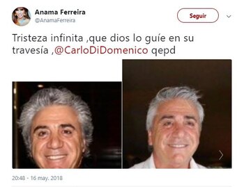 "Tristeza infinita, que Dios lo guíe en su travesía", escribió la ex modelo Anamá Ferreira, una de las tantas celebridades que fue vestida por Di Domenico.