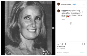 Susana Roccasalvo fue otra de las reconocidas figuras que se expresaron. La conductora publicó una vieja foto de la ex actriz y escribió: “Falleció Silvia Goldy Legrand, la hermana melliza de Mirtha Legrand. ¡Una gran pena! Abrazo enorme a Chiquita y a toda su familia”.