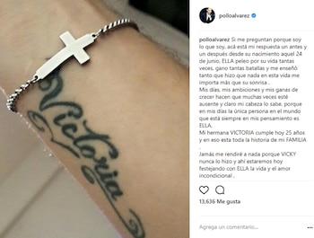 “Mi hermana Victoria cumple 25 años y en eso está toda la historia de mi familia. Jamás me rendiré a nada porque Vicky nunca lo hizo. Festejamos con ella la vida y el amor incondicional. ¿Por qué lo comparto si ella no lo va a mirar? Porque no encuentro mejor manera de decirte quién soy”, escribió.